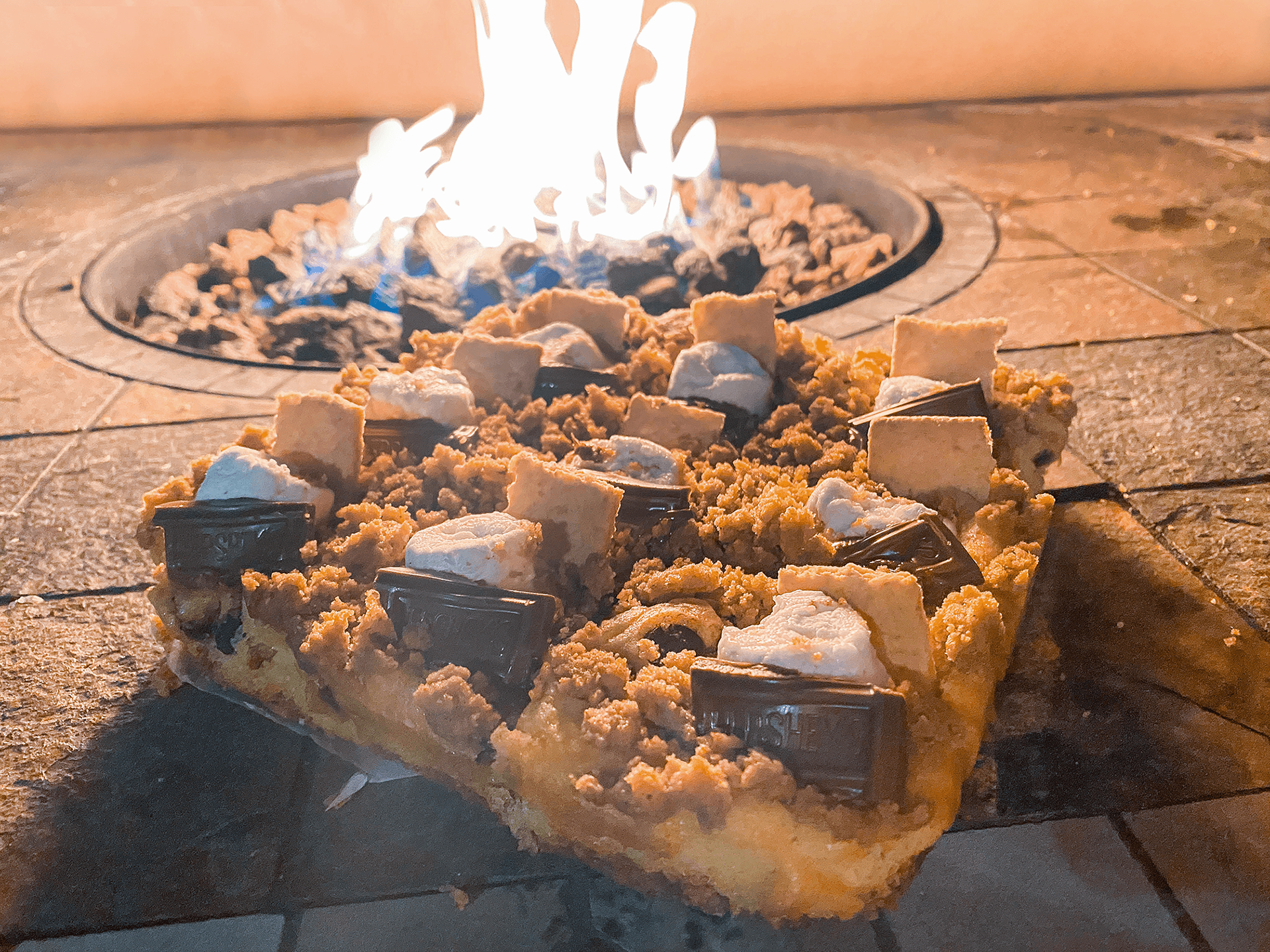Graham cracker crust layered with vanilla cake and milk chocolate morsels. Topped with marshmallow, Hershey chocolate and graham crackers. *Best served warm*